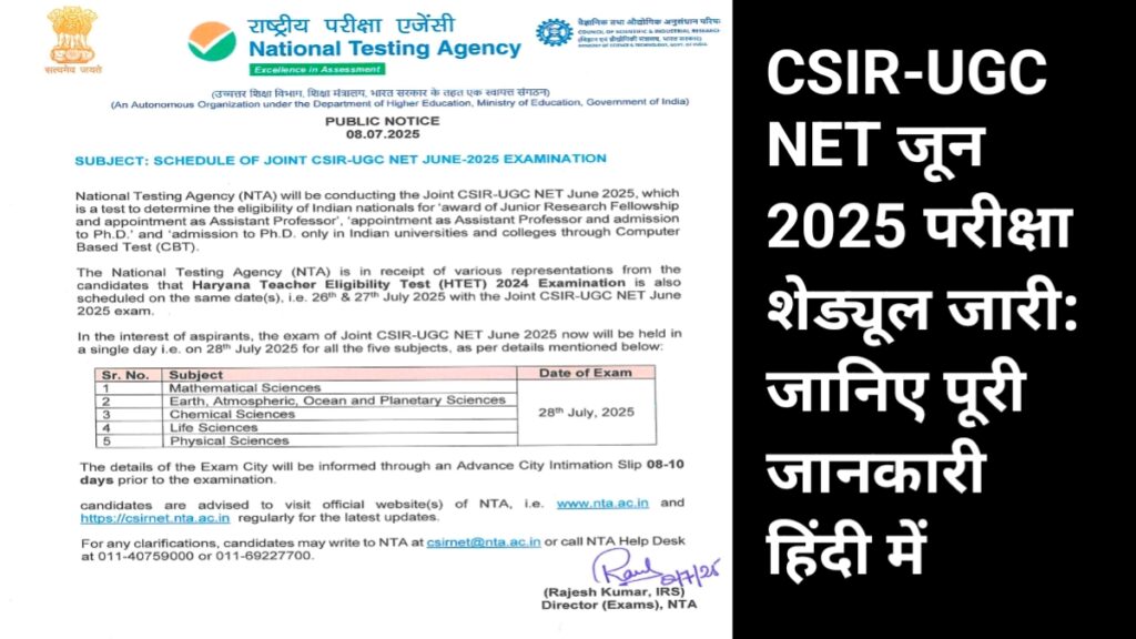 CSIR-UGC NET जून 2025: परीक्षा तिथि और शेड्यूल